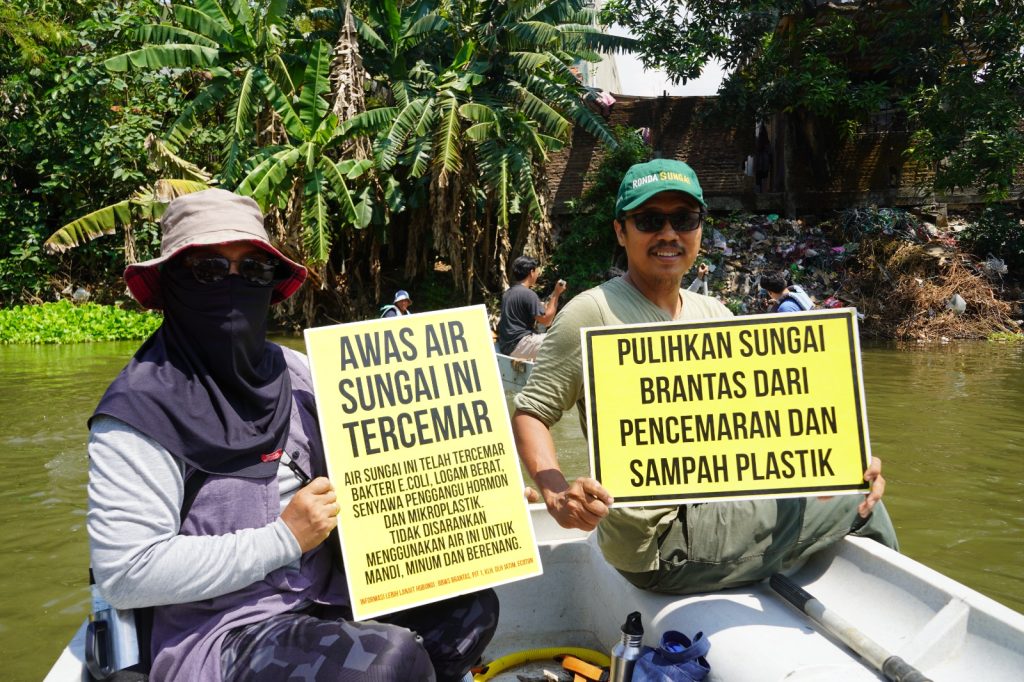• Memasang papan peringatan berisi informasi kondisi pencemaran logam berat, E. coli, dan mikroplastik pada Sungai Brantas;