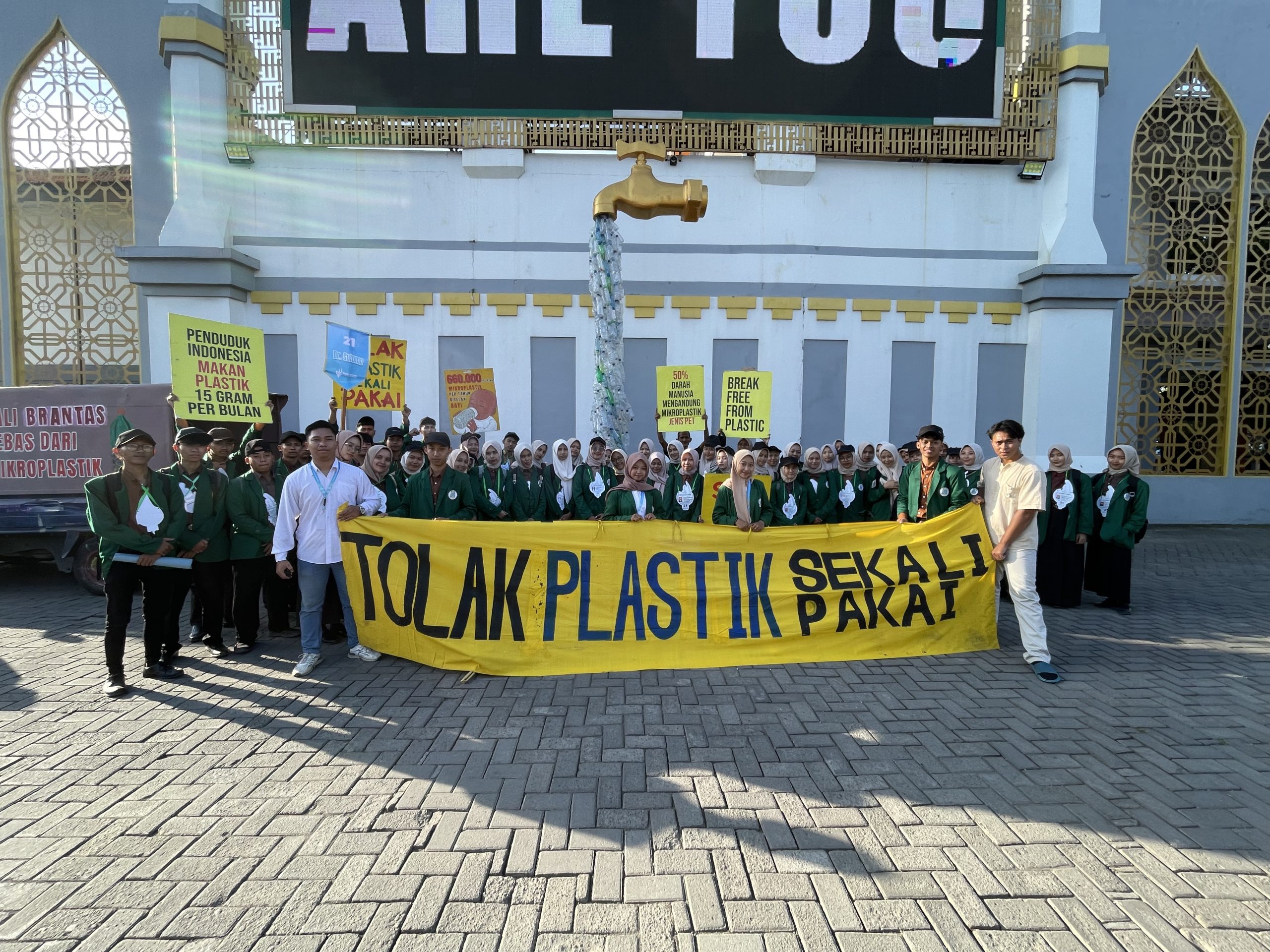 TULUNGAGUNG (26/8) – Pergulatan masyarakat menghadapi krisis plastik kini mulai mendapat perhatian serius dari kalangan kampus. Dalam rangkaian Pengenalan Budaya Akademik Kemahasiswaan (PBAK) 2025, Universitas Islam Negeri (UIN) Sayyid Ali Rahmatullah Tulungagung, Ecoton dan Aliansi Lereng Wilis (ALWI) Tulungaung menampilkan instalasi edukatif berbentuk kran plastik. Simbol ini menyuarakan pesan tegas: hentikan produksi plastik sekali pakai...